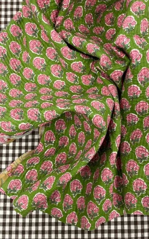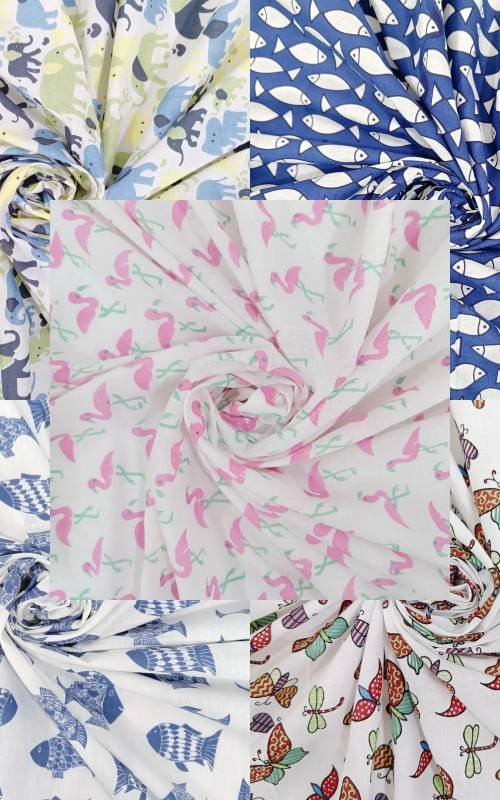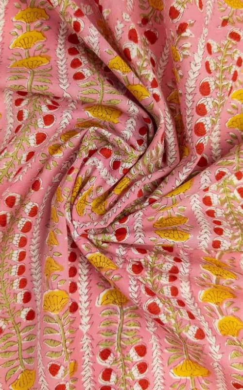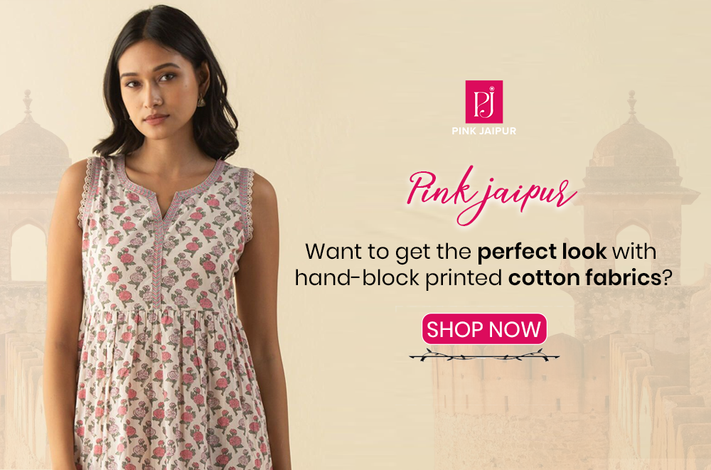 What materials are used for printed fabrics at Pink Jaipur?Our printed fabrics are primarily available in 100% cotton, rayon, cotton blends, and occasionally linen or silk blends. Each product page includes specific fabric details.